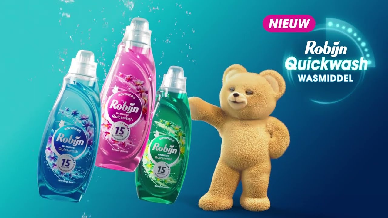 Ik trek Quickwash uit het schap en het valt mij op dat het logo zilver is in plaats van het gebruikelijke rood en dat ik iets mis – Robijntje! Het pluchen knuffelbeertje dat langzaam in mijn hart gekropen is. En die ik op tv puffend tegen Usain Bolt zie sprinten. Een knoepert van een distincitive brand asset. Zo’n attribuut waar consumenten meteen je merk aan koppelen en die de effectiviteit daardoor een boost geeft. Het beertje blijkt in 1981 speciaal bedacht voor de wasverzachters van Robijn en staat alleen op die verpakkingen. Of nee, ook op de Geurbuiltjes en Droogtrommeldoekjes zie ik. Wat precies de strategie is, weet ik niet, maar als ik Robijn was, zou ik Robijntje mij heel snel op alle producten laten toelachen. Volgens professor Mark Ritson gaat de effectiviteit van je merk significant omhoog als er in een uiting zeven distinctive brand assets zitten: merknaam, logo, kleur, typografie, slogan, jingle en mascottes. Robijntje benutten dus!